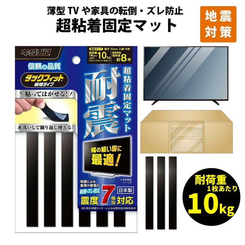 3. 家具転倒防止 タックフィット 細幅タイプ TF-10100-5 耐候 粘着固定マット 地震対策 【メール便OK12個まで】