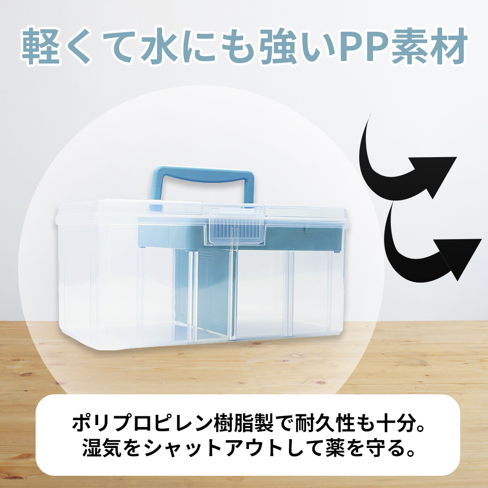 【関連ワード】 薬箱 常備 メディスンボックス MEDICINE BOX プラスチック PP かわいい オシャレ ツールボックス 持ち手付き ハンドル付き ファーマシーボックス 収納 贈り物 ギフト 新生活 引っ越し祝い クリア 透明 2段 新生活 日用品 裁縫箱 工具箱 リビング 化粧品 インテリア
