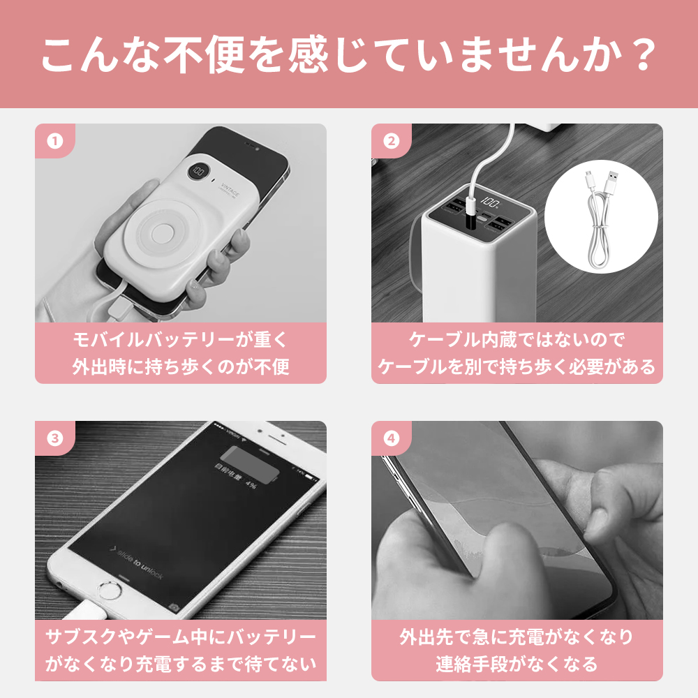ミニ 2台同時 充電 スタンド付き 大容量 軽量 小型 コネクター内蔵 ケーブル内蔵 iPhone Android Type-C 充電器 PSE 機内持込OK かわいい 急速充電 携帯 スマホ アイホン モバイル ポータブル 2ポート ポータブル充電器 薄型 アンドロイド 残量表示 コンパクト 白 黒 pse認証 スマートフォン おしゃれ 急速充電器 高速 バッテリー 急速軽量 直接充電 typec タイプc パステルカラー くすみカラー モバ充 携帯充電器 災害時 地震対策 防災用品 防災対策 防災グッズ 停電対策 停電 防災 地震 災害 節電 キャンプ 機内持込 旅行 便利グッズ