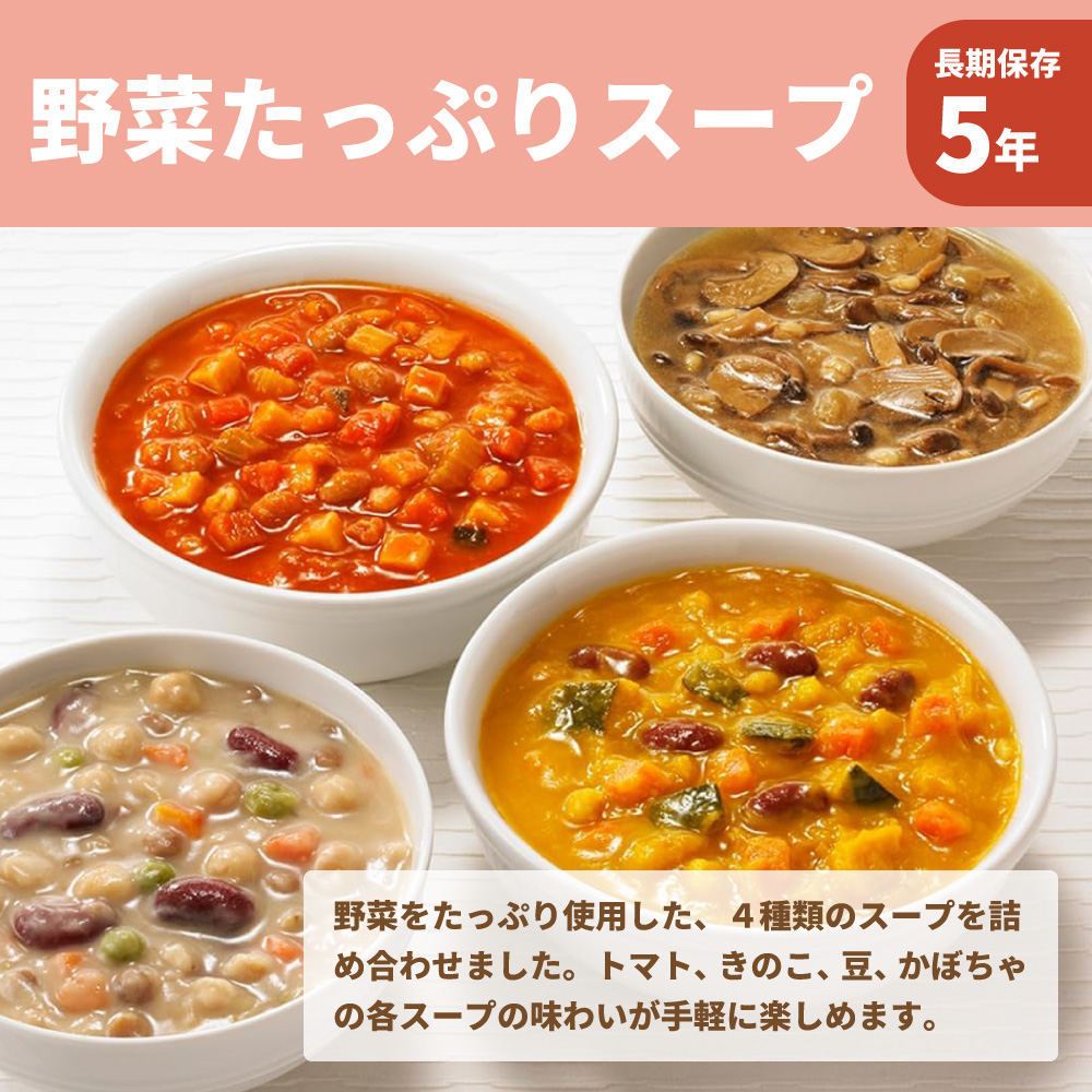 【関連ワード】 備蓄品 防災備蓄品 ローリングストック ミネストローネ ひよこ豆カレー きのこ トマト かぼちゃ 豆 和風五目 おかず 避難 水不要 保存料不使用 5年保存