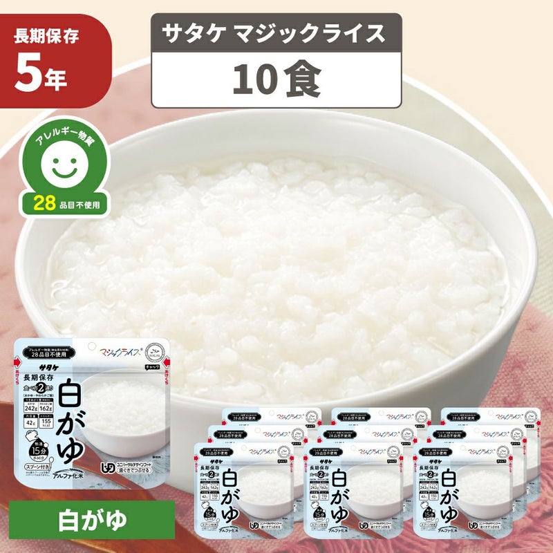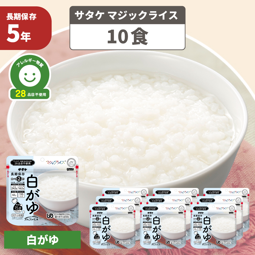 非常食 マジックライス 白がゆ 10食 防災グッズ アレルギー対応 28品目不使用 ごはん アルファ化米 防災食 サタケ
