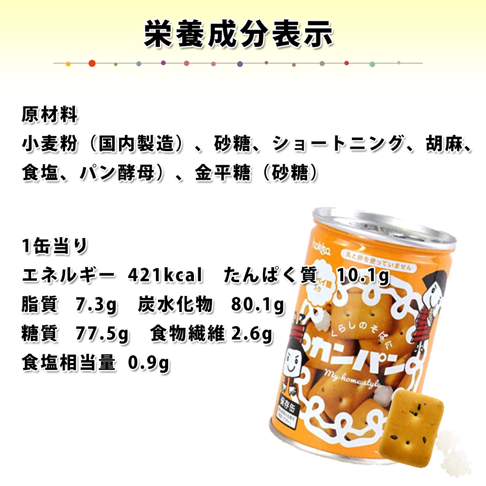 【内容量について】 カンパン1缶あたり:約110g ビーバー缶1缶あたり:約60g 米蜜ビスケット1缶あたり:約110g