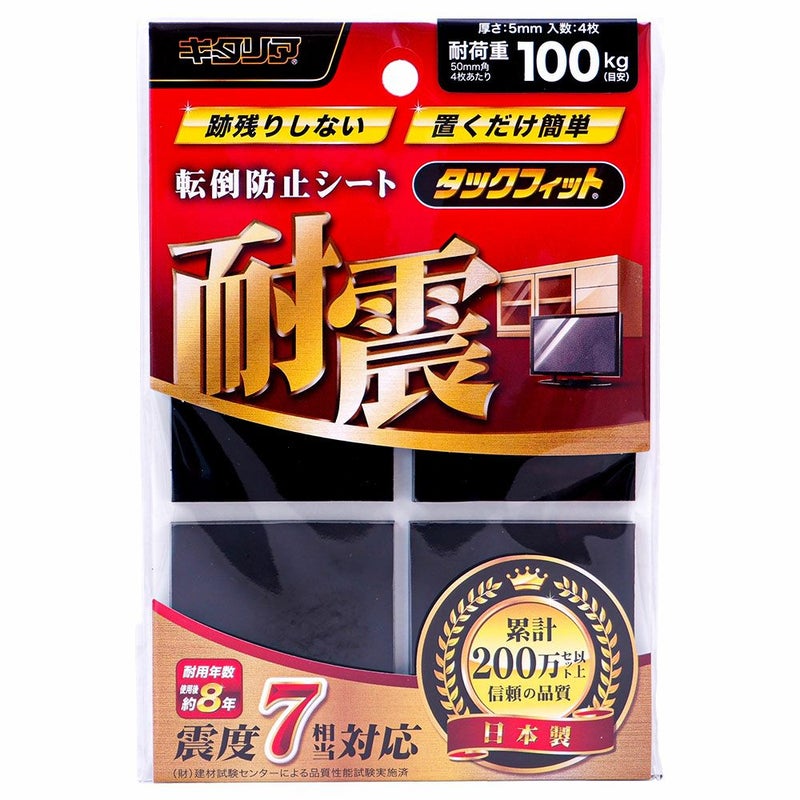 大型家具、大型家電製品、32型未満の薄型TVなどに 貼ってはがせる!水洗いOK 耐震・防振・防ズレ 超粘着固定マット 耐候タイプ 耐震マット【メール便OK(12個まで)】震度7相当にも耐える 耐震ジェル タックフィット TF-50K 4枚入