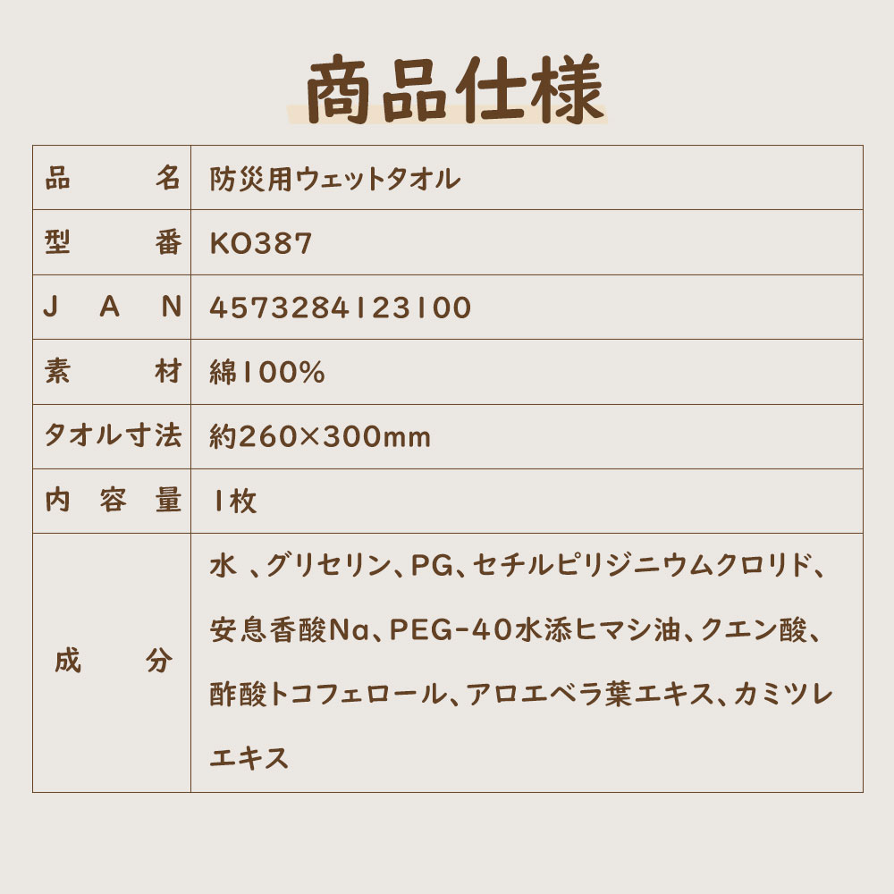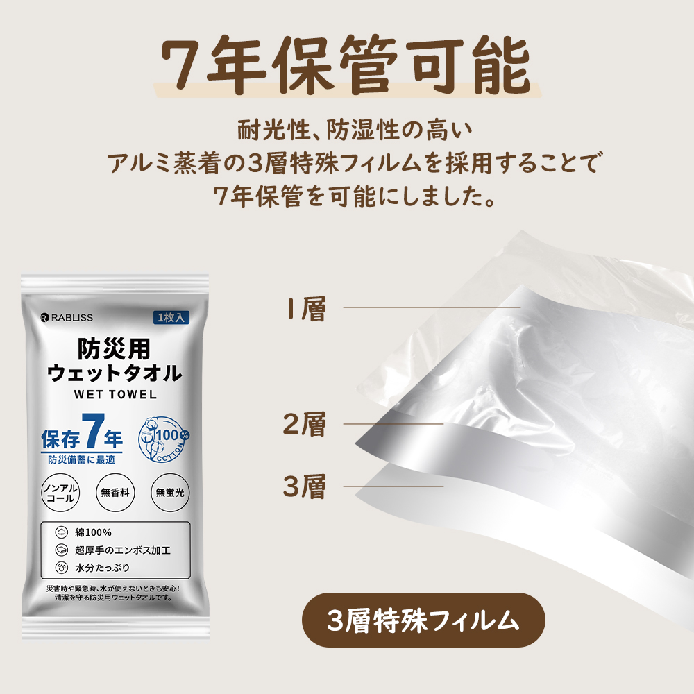 防災ウェットタオル 防災備蓄品 衛生雑貨 避難時 衛生 個包装 無香料 無着色 無蛍光 アルコールフリー エンボス加工 コットン お手拭き