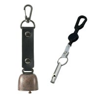 4. 熊よけ鈴 1個 カラビナ付きリール小 アルミホイッスル セット ブラウン ブラック 熊鈴 消音機能付き マグネット 消音 PUレザー 熊よけ ホイッスル 鈴 笛 登山 EVERSAFE (メール便3個まで)