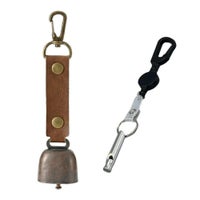 3. 熊よけ鈴 1個 カラビナ付きリール小 アルミホイッスル セット ブラウン ブラック 熊鈴 消音機能付き マグネット 消音 PUレザー 熊よけ ホイッスル 鈴 笛 登山 EVERSAFE (メール便3個まで)