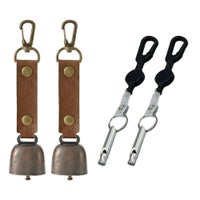 4. 熊よけ鈴 2個 カラビナ付きリール小 アルミホイッスル セット ブラウン ブラック 熊鈴 消音機能付き マグネット 消音 PUレザー 熊よけ ホイッスル 鈴 笛 登山 EVERSAFE (メール便3個まで)
