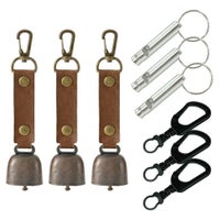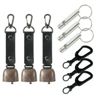 4. 熊鈴 熊よけ鈴 3個 アルミホイッスル カラビナリング付き ブラウン ブラック 消音機能付き マグネット 磁石 カラビナ 消音 PUレザー 熊よけ 対策 鈴 笛 ホイッスル EVERSAFE (メール便1セットまで)