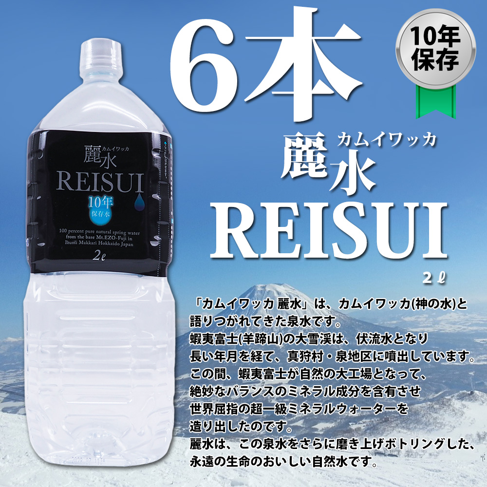 公的機関での水質分析飲料水適合基準をクリア 【10年保存水】ミネラルウォーター「カムイワッカ麗水2Lx6本」 (長期保存水/5年保存水より2倍長持ち)