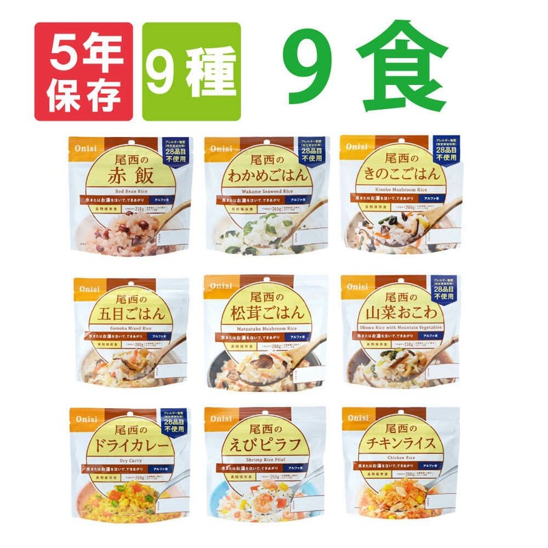 尾西のアルファ米 9種類9食セット 5年保存食 3日分 非常食セット 尾西のアルファ米9種類9食セット5年保存食