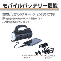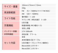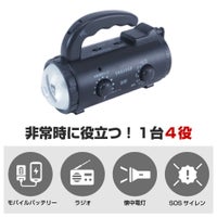上記の照明・バッテリー・ラジオなどがありますが、それを一つに纏めた多機能防災ラジオがあり、その上軽量かつ、小さめの商品があり持ち運びもしやすく、防災リュックに入れてもスペースを取ることがありません。手回し発電(ダイナモ発電)は電池切れた上に乾電池がない場合、多機能ラジオに付いている手回し発電の機能でラジオが聞けるようになります、またソーラーパネル付きの多機能ラジオもあり、晴天時にラジオを充電することが可能です。