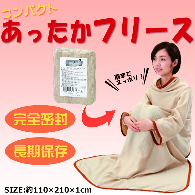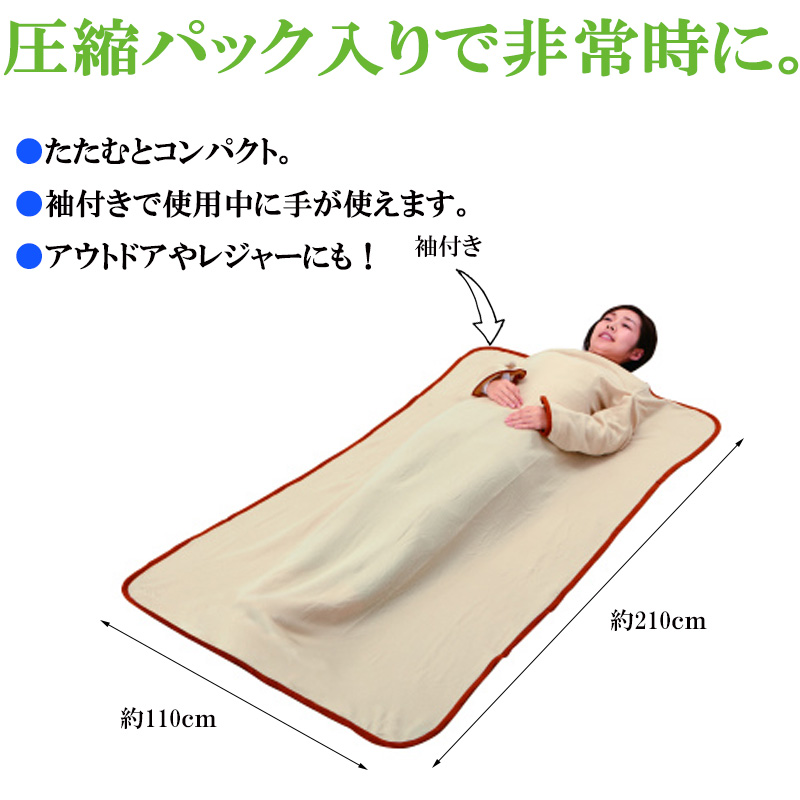 袖付きで身体全体を暖かく包みます!シリカゲル乾燥剤付き。 着る毛布コンパクトあったかフリース完全密封