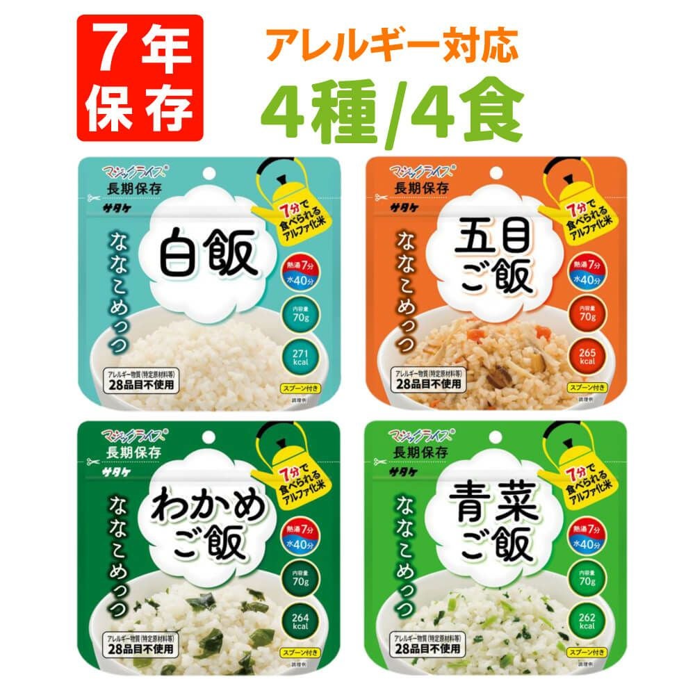 他の画像を見る 保存期間7年 調理時間は7分に短縮!アレルギー物質28品目不使用 サタケ マジックライス ななこめっつ 4種4食セット [メール便1セットまでOK] 公式サイト特別価格 ¥ 1,614 税込 詳細を見る お気に入りに登録する