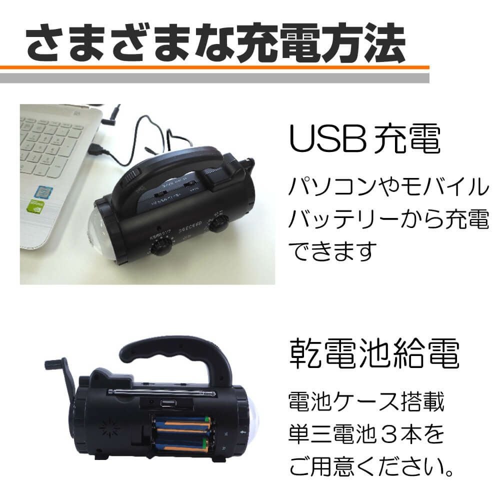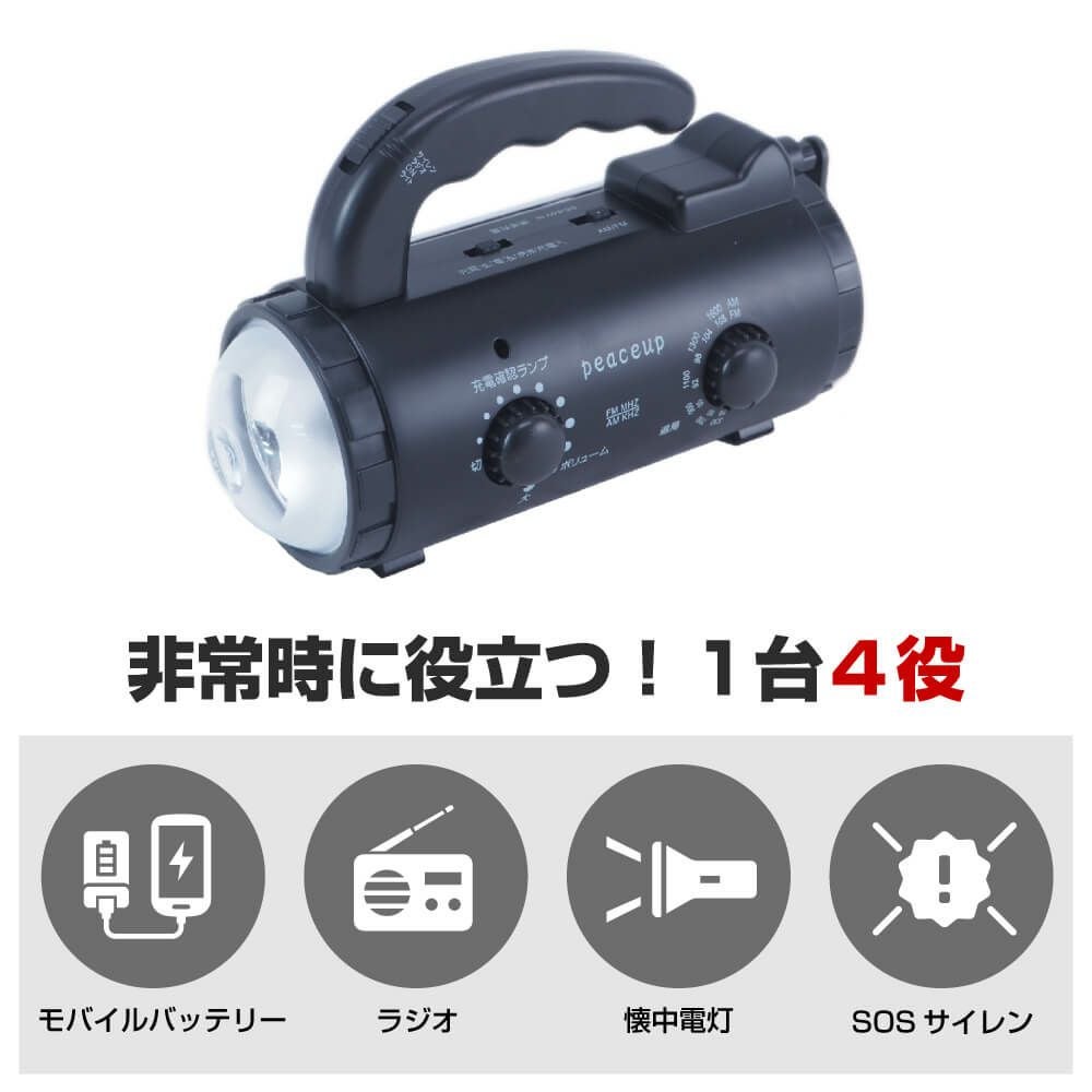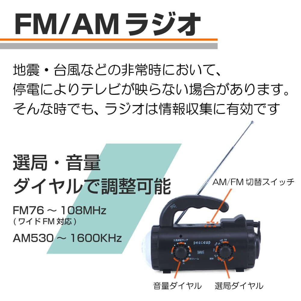 他の画像を見る 乾電池使用も可能で緊急時も安心!多機能 スマホ充電 手回し/USB蓄電 AM/FMラジオ 緊急サイレン 点滅灯 PEACEUP 防災ラジオ 多機能 ライト 新型ダイナモチャージングラジオライト 公式サイト特別価格 ¥ 2,830 税込 在庫切れ 詳細を見る お気に入りに登録する