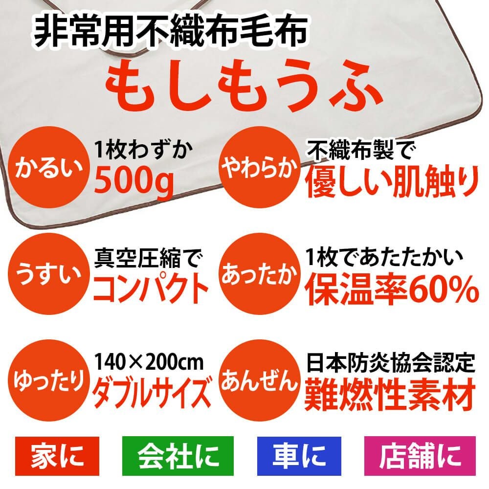 他の画像を見る アルミ真空圧縮パック 難燃/軽量/コンパクト!従来の1/3重量 1/4容積で省スペース収納! 防災 備蓄用不織布毛布 もしもうふ レギュラータイプ 1枚 140x200cm 日本防炎協会認定品 公式サイト特別価格 ¥ 3,030 税込 詳細を見る お気に入りに登録する