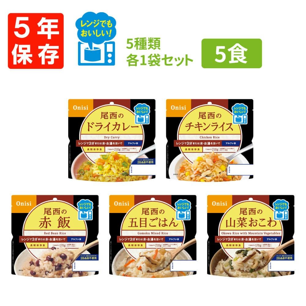 他の画像を見る レンジ調理可能!お湯か水を注ぐだけで炊きたてご飯のおいしさ 非常食 尾西食品 尾西のレンジ+ アルファ米 5種類×各1袋セット 公式サイト特別価格 ¥ 1,928 税込 在庫切れ 詳細を見る お気に入りに登録する