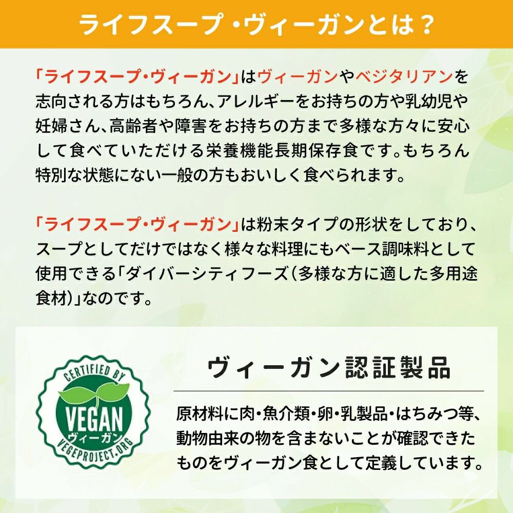 他の画像を見る 水またはお湯で溶かすだけの簡単調理 ヴィーガンやアレルギーの方も、乳幼児・妊婦さん・高齢者まで安心して食べられる栄養機能長期保存食 非常食 ライフスープ・ヴィーガン 野菜コンソメ味 5年保存 単品 アレルギー対応 vegan ビーガン 粉末 保存食 長期保存 野菜スープ 防災 ベジタルアドバンス メール便3袋まで 公式サイト販売価格 ¥ 1,128 税込 詳細を見る お気に入りに登録する