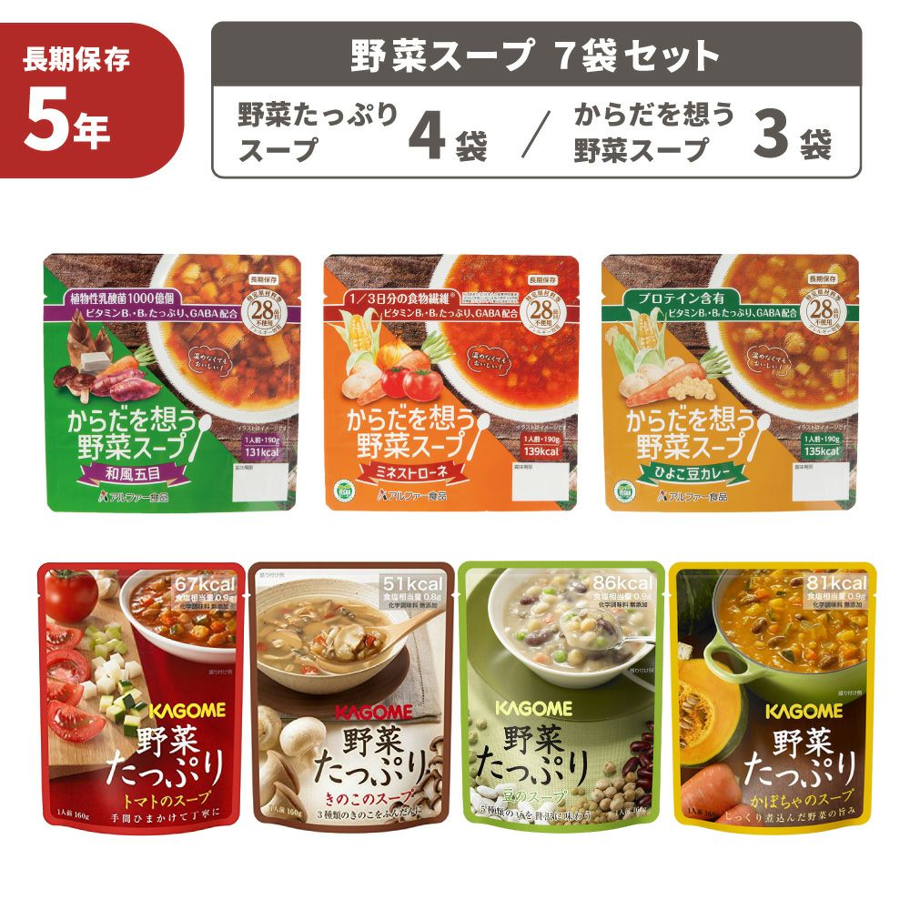 他の画像を見る いつでも健康を支える長期保存可能な野菜スープ 温めなくてもおいしい 野菜と食物繊維を手軽にチャージ 食物アレルギー対応 非常食 からだを想う野菜スープ 7袋セット ミネストローネ/ひよこ豆カレー/和風五目 スープ 野菜 レトルト 備蓄 栄養 特定原材料等28品目不使用 アルファー食品 公式サイト特別価格 ¥ 2,196 税込 詳細を見る お気に入りに登録する