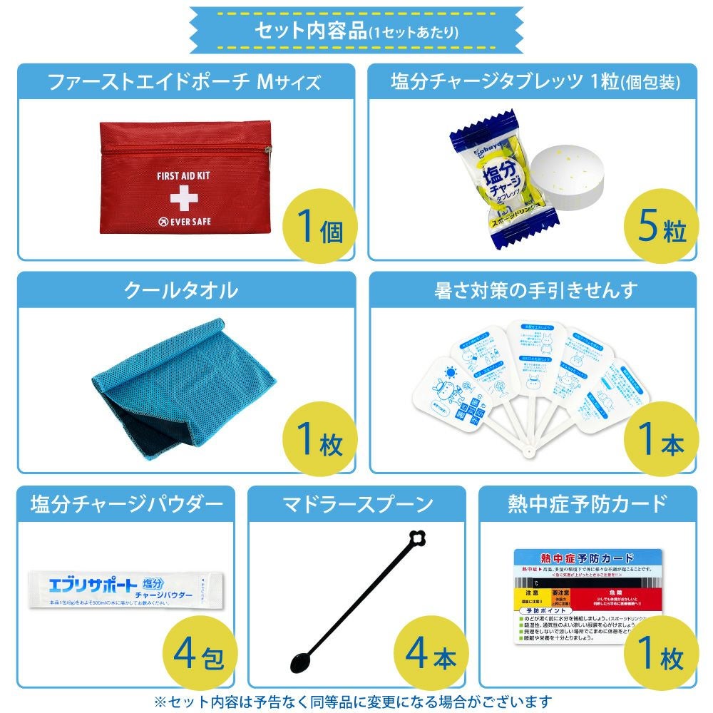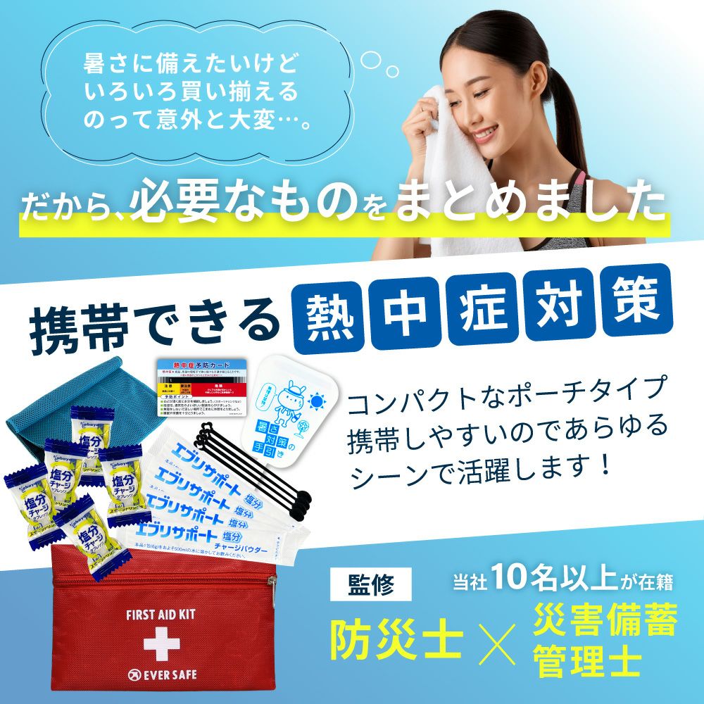 他の画像を見る 防災士監修 暑さ対策 熱中対策応急セット 熱中症予防キット 工場 スポーツ アウトドア 塩分補給 車載用にも 熱中症対策用品 熱中症対策キット ポーチタイプ 17点 2個セット 塩分補給パウダー 暑さ対策 熱中症対策グッズ 持ち運び 工事現場 農作業 野外作業 アウトドア ATP002 メール便2個セットまで 公式サイト特別価格 ¥ 2,830 税込 詳細を見る お気に入りに登録する
