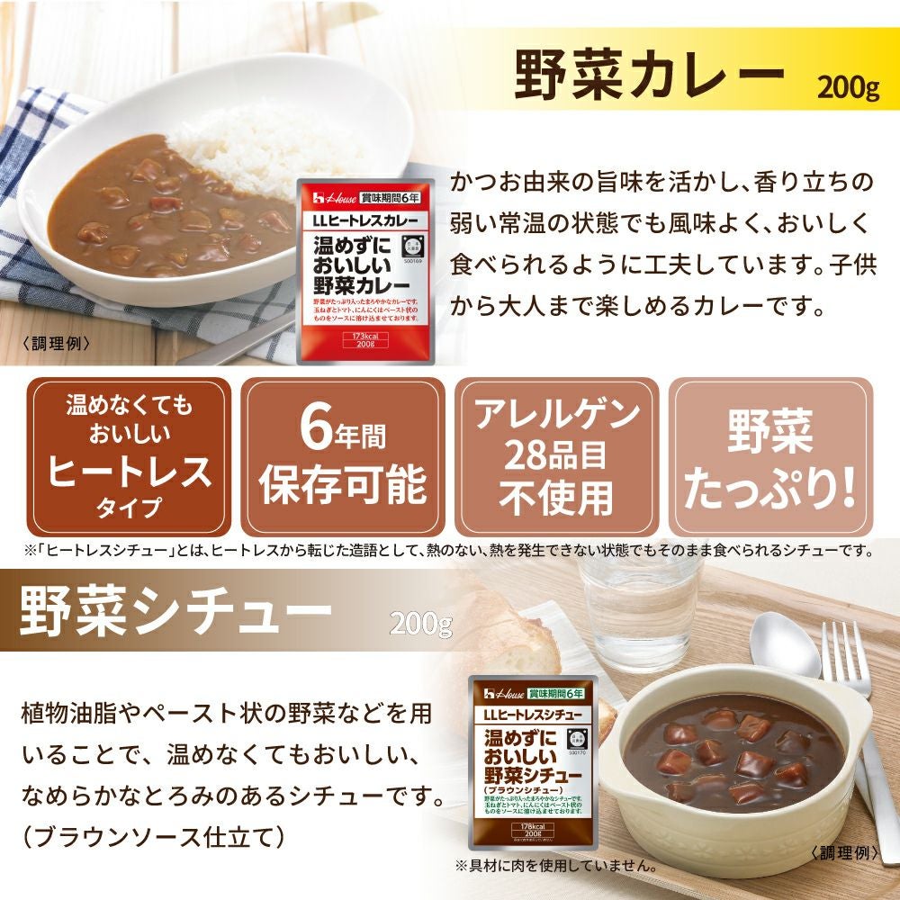 他の画像を見る 非常食向け 賞味期間6年 温めずにすぐに食べられる 特定原材料28品目(アレルギー物質)不使用 おいしい レトルトシチュー レトルトシチュー LLヒートレスシチュー 温めずにおいしい野菜シチュー ブラウンシチュー 200g 6袋 非常食 6年保存 防災食 備蓄品 防災用品 ハウス食品 メール便1セットまで 公式サイト特別価格 ¥ 1,581 税込 詳細を見る お気に入りに登録する