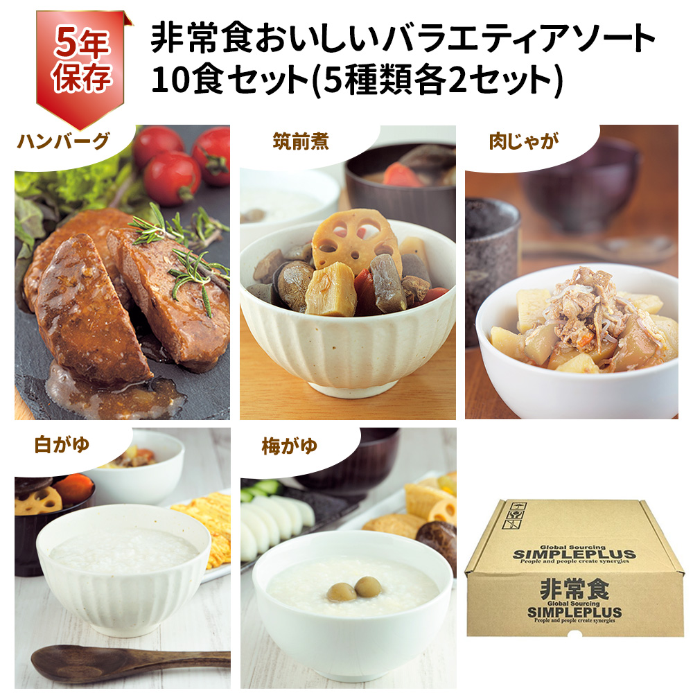 防災食10食セット おいしいバラエティアソート シンプルプラス 非常食[5年保存][国内製造] 常温保存 惣菜 おかず おかゆ 災害 避難 防災備蓄