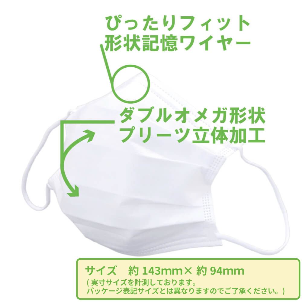 Wオメガプリーツ型 不織布 サージカルマスク 子供用・女性用 BFE99%カット