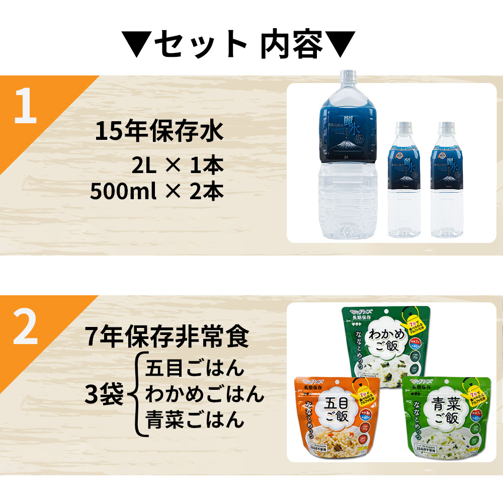 3. 非常食セット 3日間分 15年保存水+7年保存食 詰め替え可能 Aセット 1セット HS7A01
