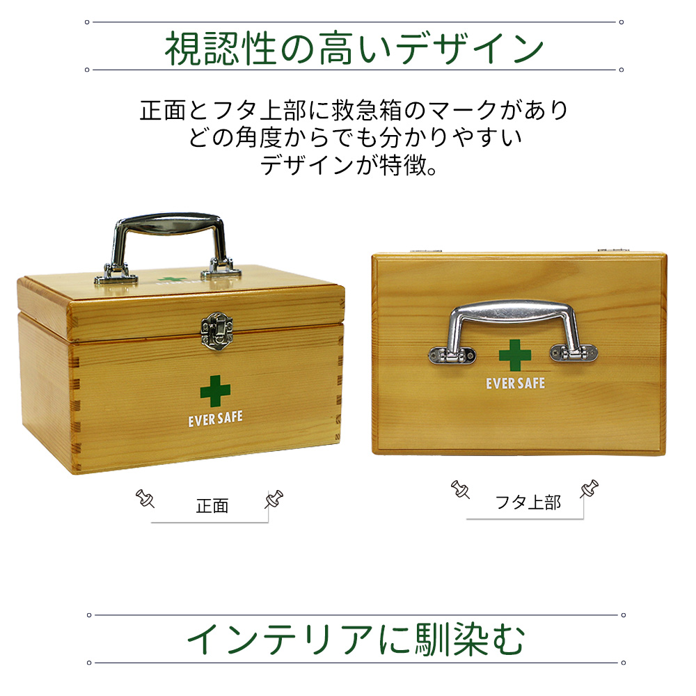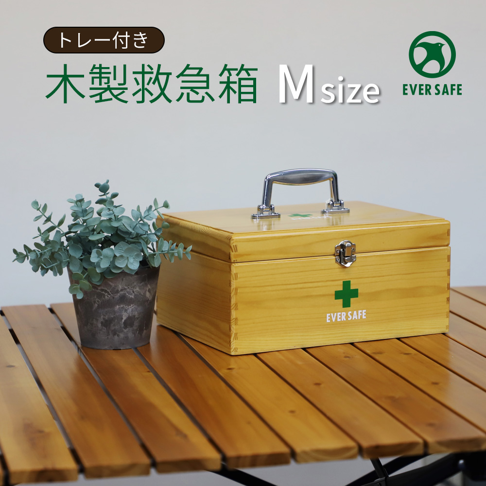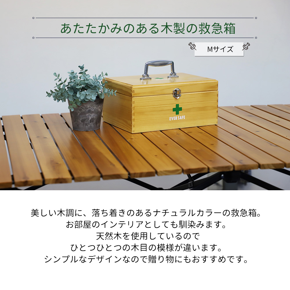 常備 安心 シンプル ナチュラル ファーストエイド 救急用品 木製救急箱 Mサイズ 救急ボックス PKB03 薬箱 応急 手当