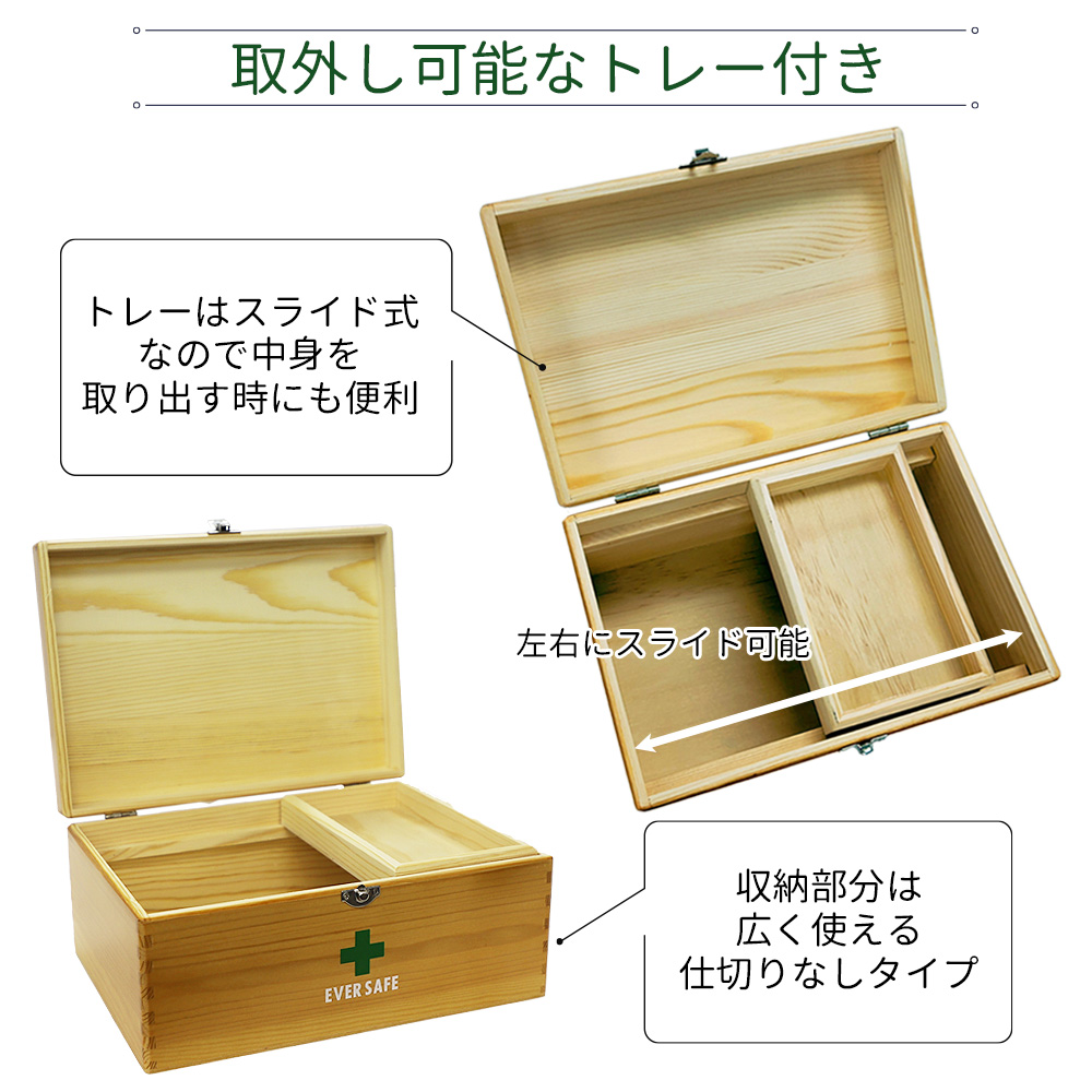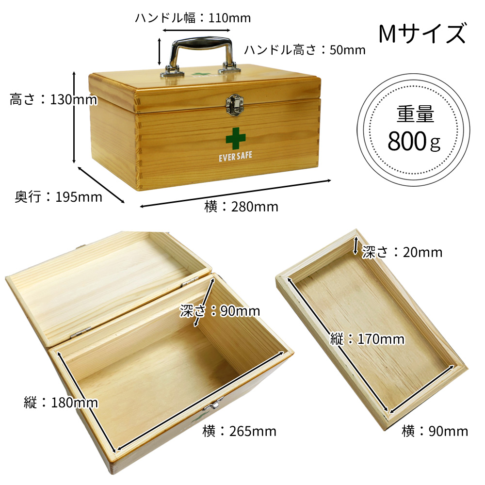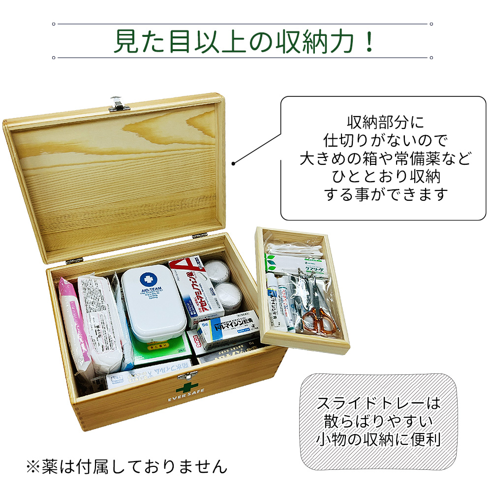 木製救急箱 トレー付き Mサイズ PKB03
