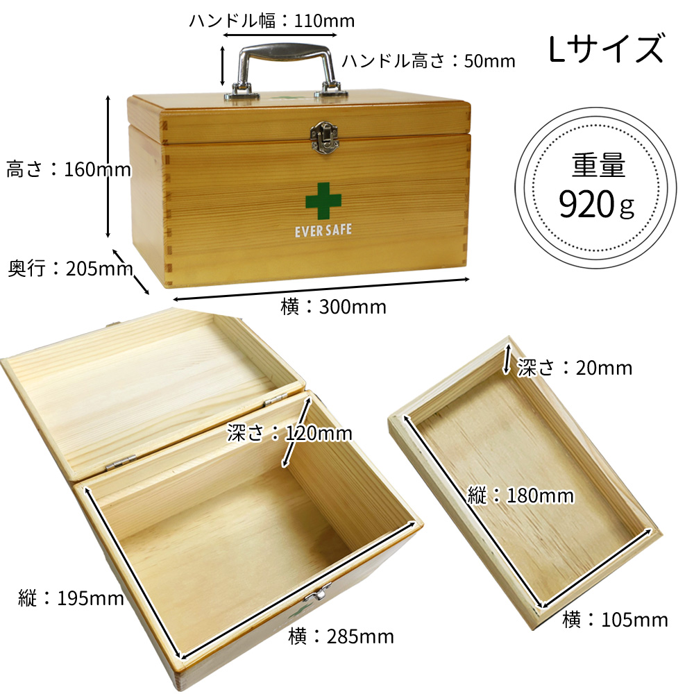 3. 木製救急箱 Lサイズ 救急ボックス PKB03 薬箱 応急 処置 手当