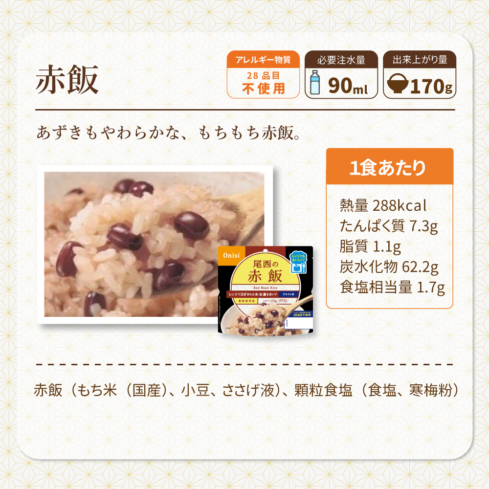 レンジ調理可能!お湯か水を注ぐだけで炊きたてご飯のおいしさ 尾西のレンジ+ アルファ米 アレルギー対応(赤飯・山菜おこわ・ドライカレー) 12食 3種類x4袋セット