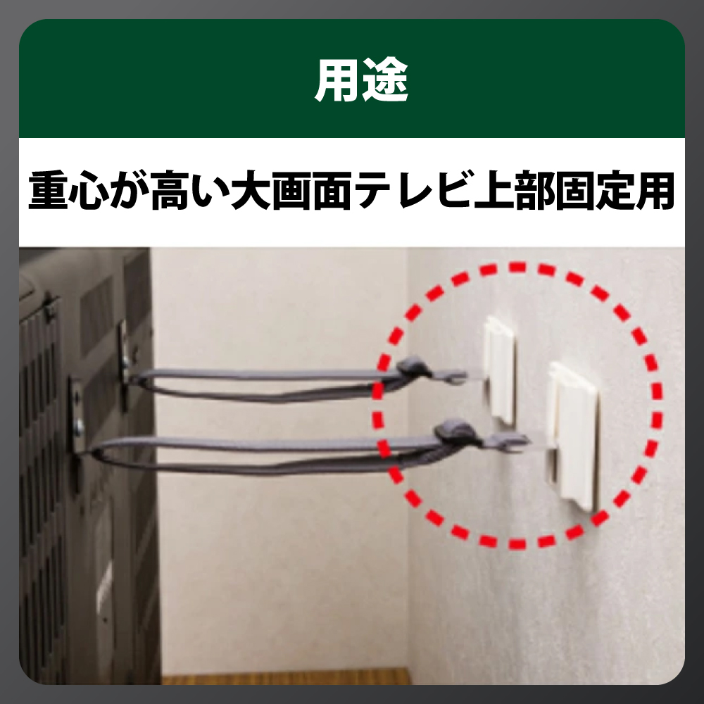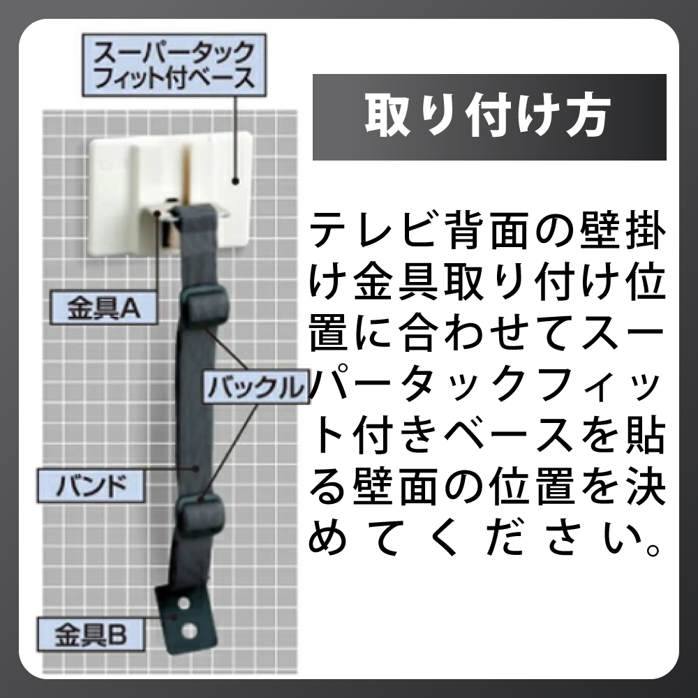 32から40型の薄型大画面テレビ対応 重心が高い大画面テレビ上部固定用 ネジ・クギ不要!粘着ゲルと特殊ベルトで転倒防止! ベルト部ブラック/本体ホワイト 防災 家具転倒防止用品 スーパータックフィット 薄型大型テレビ 32から40型用 TF-TV-M (粘着マット30mm 角4枚入り)