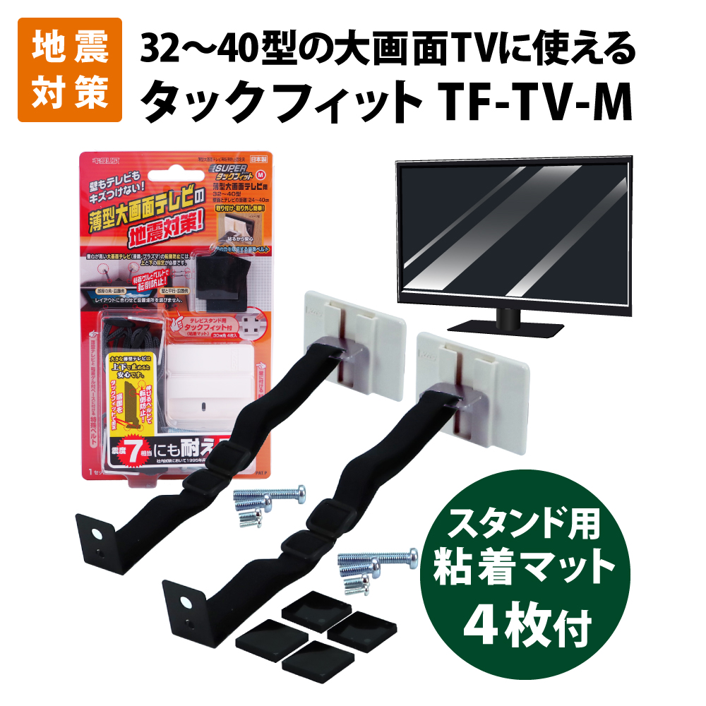3. 防災 家具転倒防止用品 スーパータックフィット 薄型大型テレビ 32から40型用 TF-TV-M (粘着マット30mm 角4枚入り)