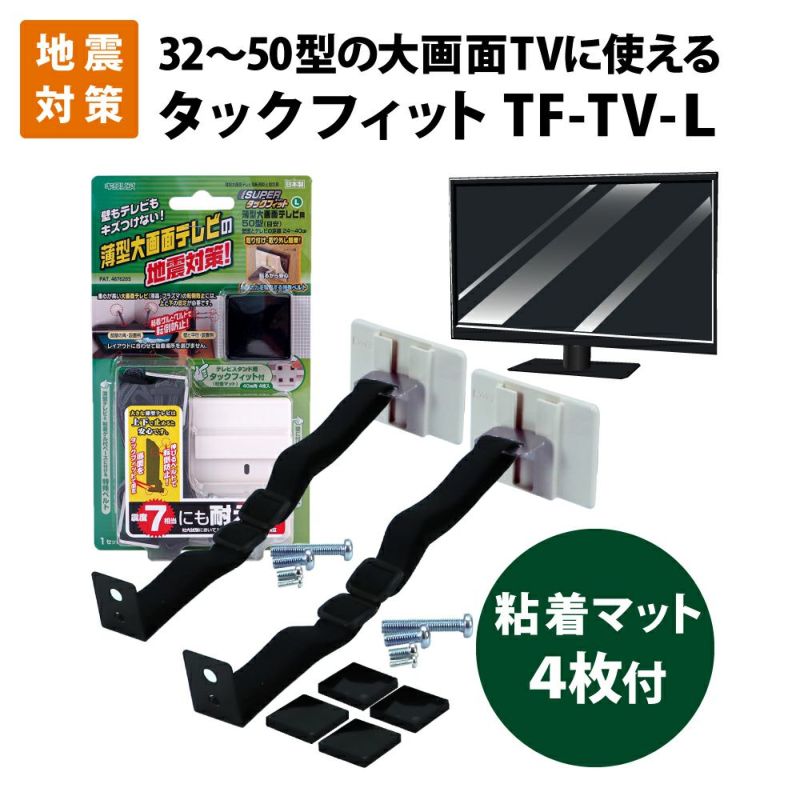 32から50型の薄型大画面テレビ対応 重心が高い大画面テレビ上部固定用 ネジ・クギ不要!粘着ゲルと特殊ベルトで転倒防止! ベルト部ブラック/本体ホワイト 防災 家具転倒防止用品 スーパータックフィット薄型大型テレビ 32から50型用 TF-TV-L (粘着マット40mm 角4枚入り)