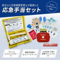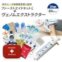 【防災士×災害備蓄管理士監修】 災害時やアウトドア、スポーツなど、いたるところに危険は潜んでいます。ですが、ご自身でひとつひとつ揃えるのは面倒で手間もかかりますよね。 そんなお悩みを解消するため、本当に必要なアイテムを厳選したファーストエイドキットを作りました。 救急セットは機能性抜群なセミハードケースにまとめているので、すぐに持ち出せます。(ヴェノムエクストラクターは専用ケースでお届けします) 簡単マニュアルもついているので、いざというときにも冷静に手当が可能です。 家庭用はもちろん、キャンプなどの宿泊用、車載用にもぴったりのセットです。 ■セット内容品 ファーストエイドポーチ(Lサイズ)×1ヴェノムエクストラクター×1液晶体温計×1N95防護マスク×1キズ洗浄消毒×1絆創膏(Mサイズ)×12絆創膏(Lサイズ)×6キズあて防水パッド(Sサイズ)×1キズあて防水パッド(Mサイズ)×1キズあて防水パッド(Lサイズ)×1滅菌ガーゼ(Sサイズ)×1滅菌ガーゼ(Mサイズ)×1滅菌ガーゼ(Lサイズ)×1アルコール消毒綿×4ハサミ×1ピンセット×1包帯(2号)×1包帯(3号)×1包帯(4号)×1不織布三角巾×1綿棒(個包装)×10ニトリル手袋(個装パッケージ入)×1ポリエチレン手袋(密封個包装)×2不織布テープ×1安全ピン×4止血帯(ゴム)×1人工呼吸マウスピース×1ファーストエイドキットガイド×1