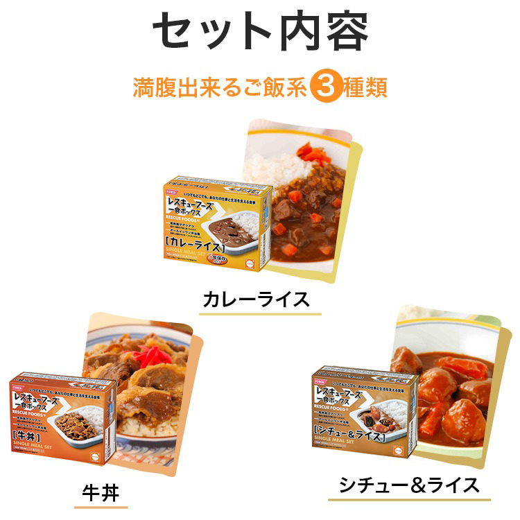 【賞味期限について】 牛丼/シチュー&ライス 賞味期限:製造より3年保存(賞味期限2年半以上の商品をお届けします) カレーライス/野菜一日これ一本 賞味期限:製造より5年保存(賞味期限4年半以上の商品をお届けします)