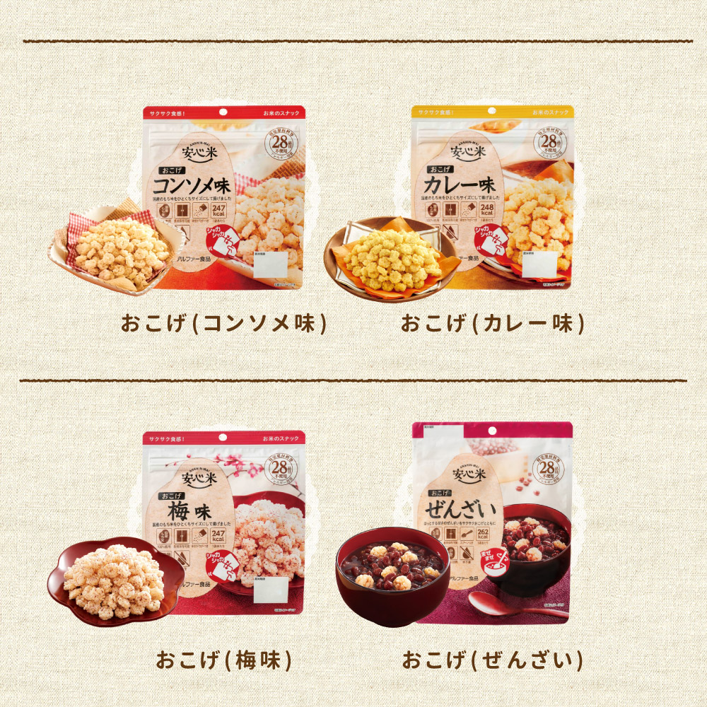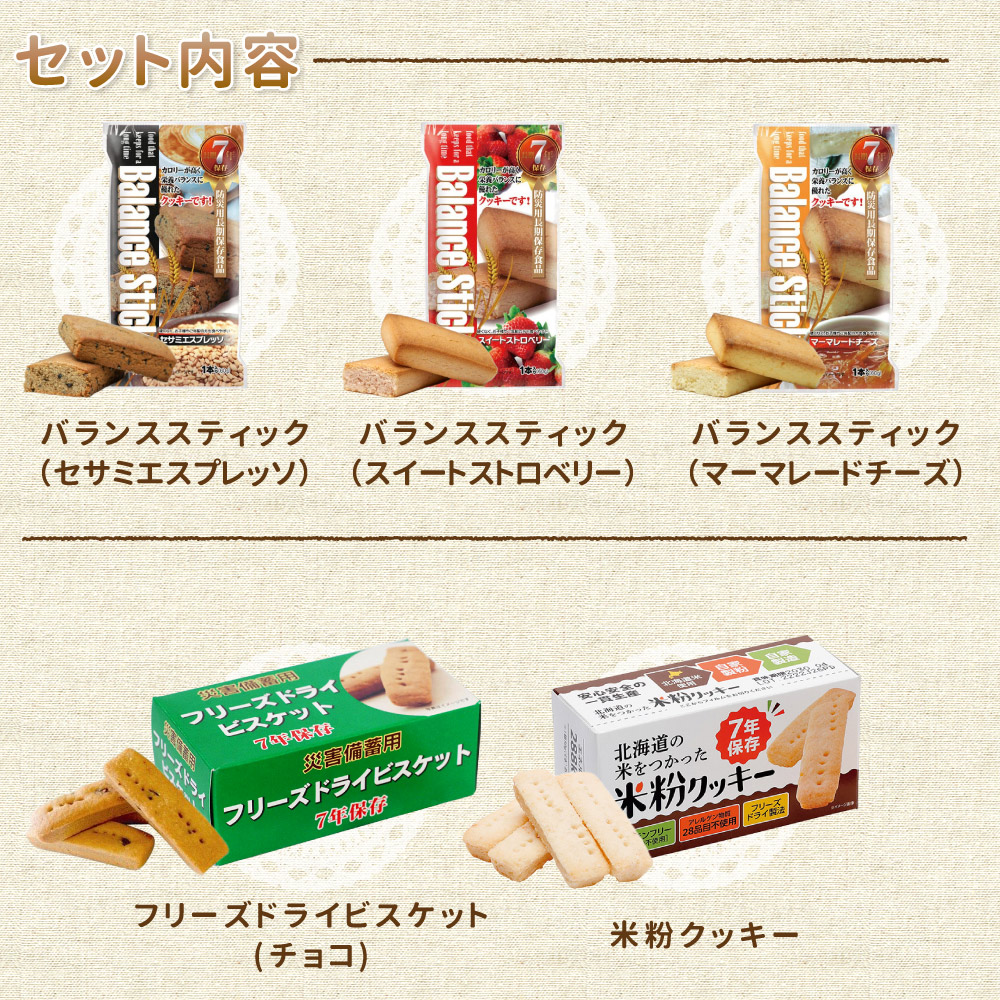【関連ワード】 ぜんざい 米粉クッキー バランススティック おやつ ビスケット アルファー食品 子ども 防災セット 防災備蓄品 常温保存 保存食 詰合せ アソート フリーズドライ バラエティーセット おしるこ コンソメ味 梅味 エスプレッソ ストロベリー マーマレード チーズ
