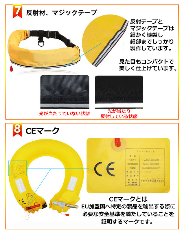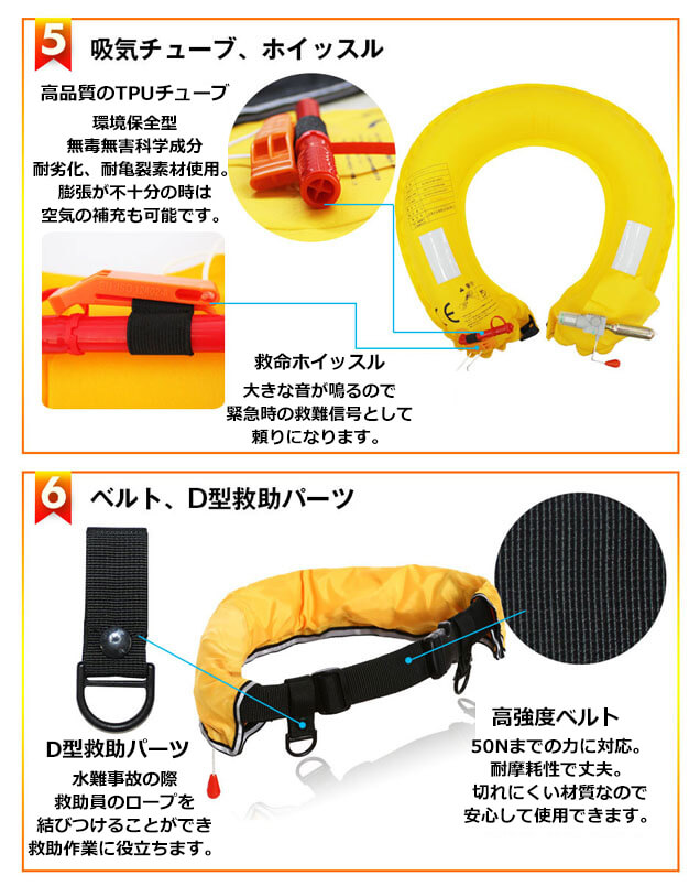 CE認証品(EU加盟国安全基準適合)・ISO認証安全規格取得品!ライフジャケット ウエスト ベルトタイプ 手動膨張式!