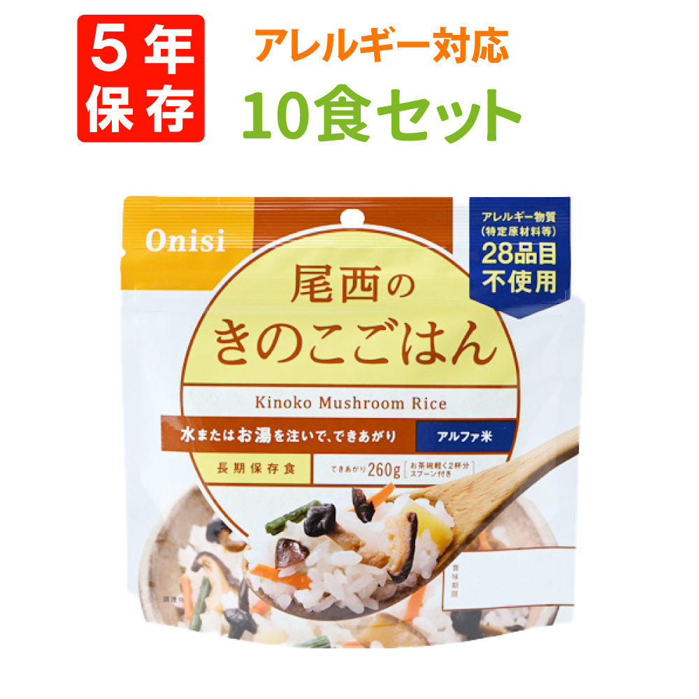 5. 尾西食品「きのこごはん 10食セット」5年保存食