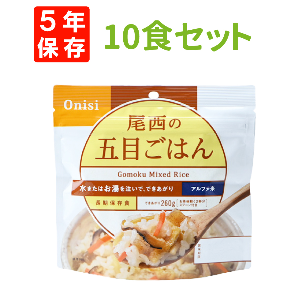 7. 尾西食品「五目ごはん 10食セット」5年保存食