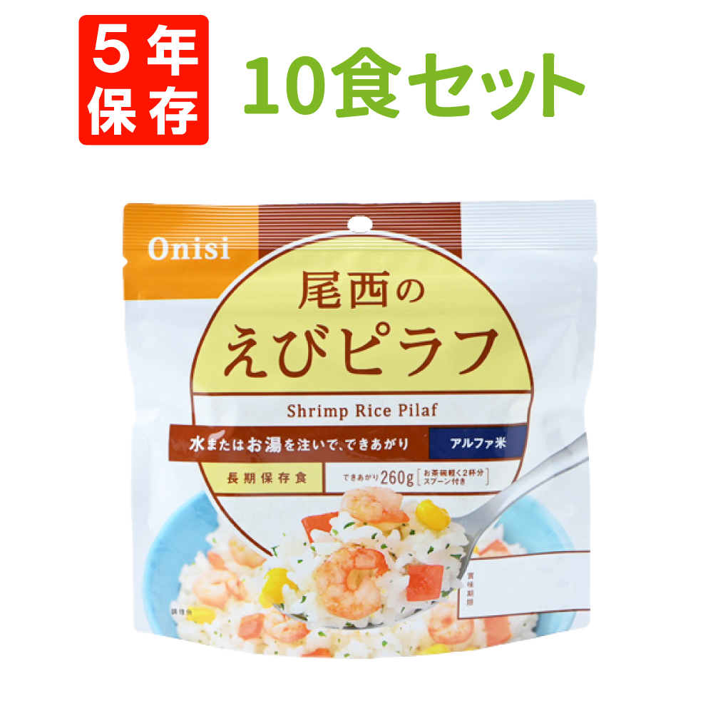 3. 尾西食品「えびピラフ 10食セット」5年保存食