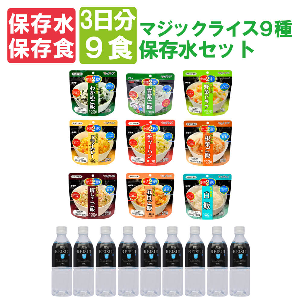 3. サタケ マジックライス3日分アルファ米全9種と10年保存水9本セット5年保存