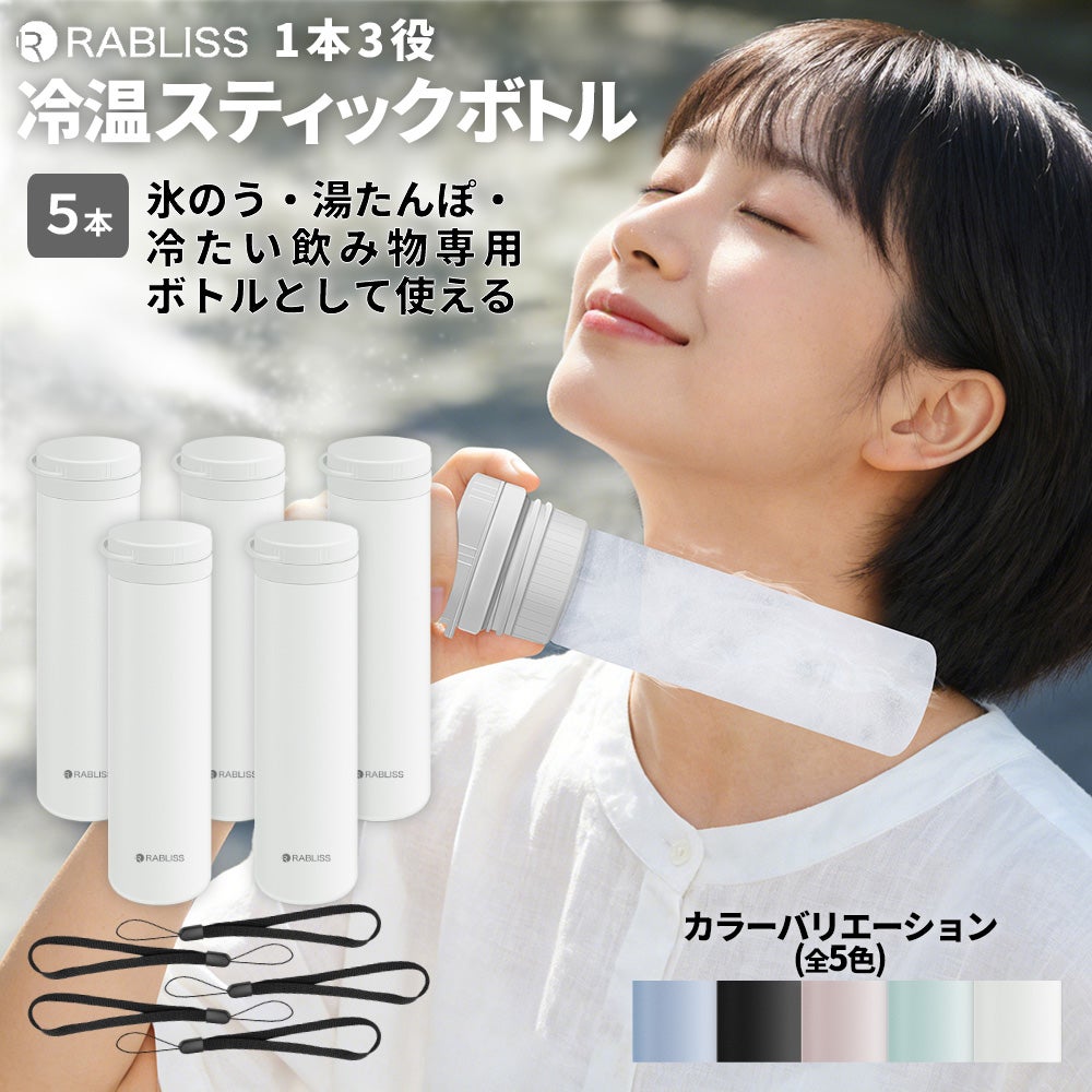 冷温スティックボトル 5色 5本セット 熱中症対策用品 オールシーズン 3WAY ストラップ付き 冷温ボトル 冷却グッズ 湯たんぽ アイスパック 寒さ対策 携帯ボトル コンパクト 持ち運び スリムボトル 軽量 KO426 RABLISS