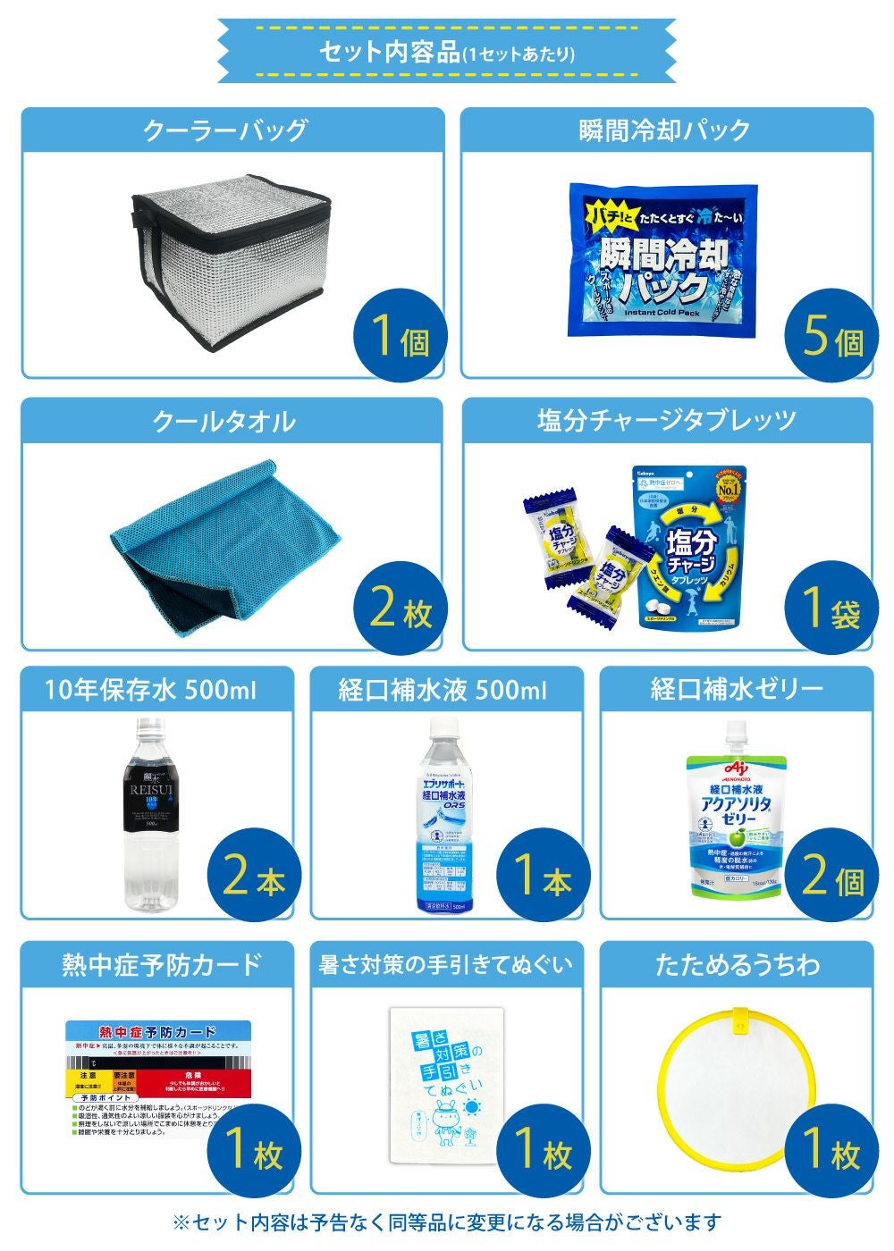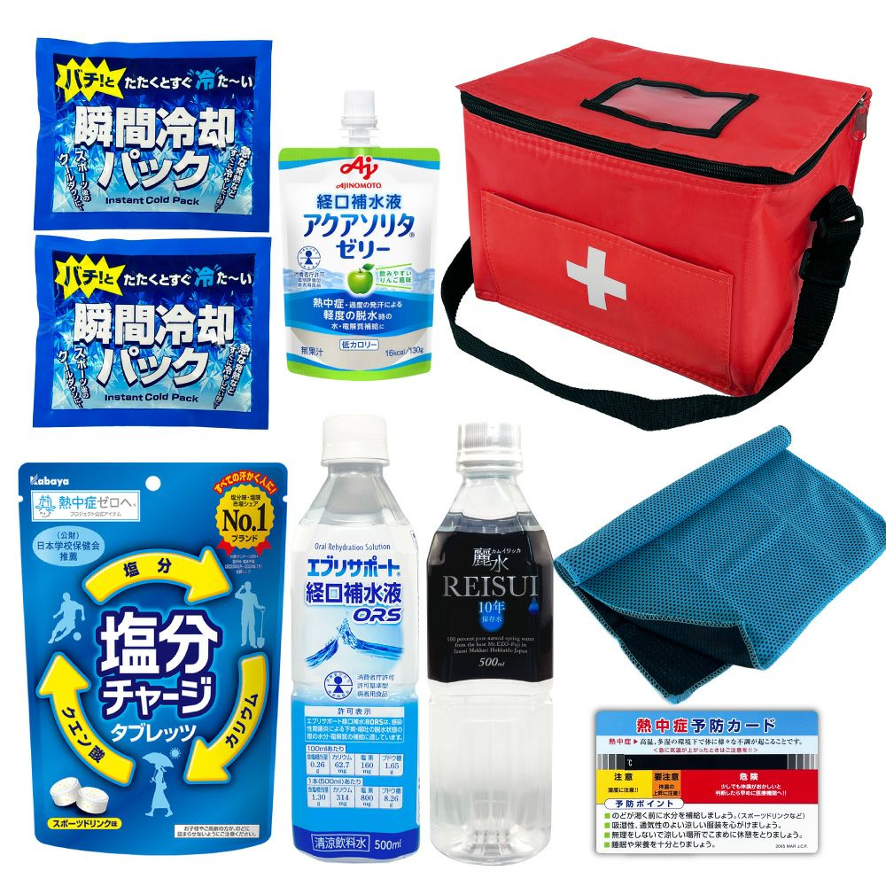 他の画像を見る 暑さ対策 熱中対策応急セット・熱中症対予防キット 夏場の現場作業 工場 スポーツ アウトドア 塩分補給 車載用にも 熱中症対策用品 熱中症対策キットDX17点 シルバー 8セット 暑さ対策 クーラーバッグ 瞬間冷却剤 ゼリー ドリンク 塩分チャージ タブレット 工事現場 ATDX008 PEACEUP 公式サイト特別価格 ¥ 28,842 税込 詳細を見る お気に入りに登録する