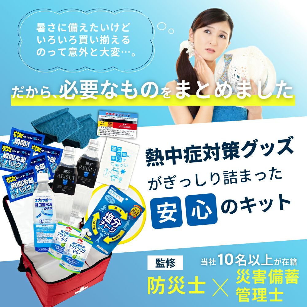 他の画像を見る 防災士監修 暑さ対策 熱中対策応急セット・熱中症予防キット 夏場の現場作業 工場 スポーツ アウトドア 熱中症対策セット 塩分補給 車載用にも 熱中症対策用品 熱中症対策キット 塩分補給パウダー 25点 シルバー 10セット 粉末清涼飲料 暑さ対策 熱中症対策グッズ WBGT 工事現場 農作業 野外作業 アウトドア ATK010 PEACEUP 公式サイト特別価格 ¥ 34,171 税込 詳細を見る お気に入りに登録する