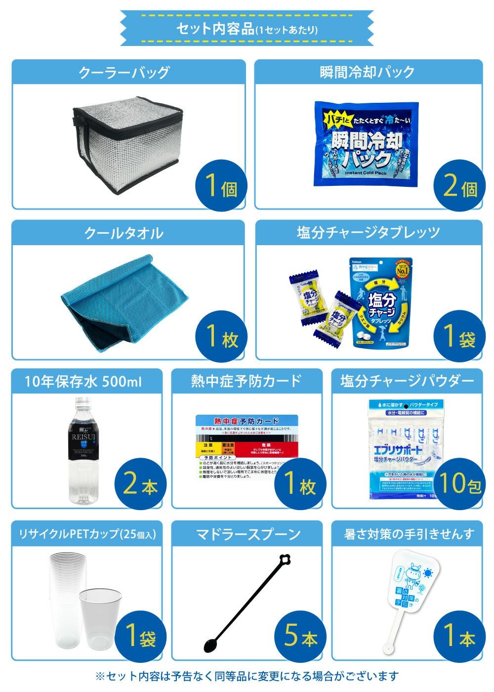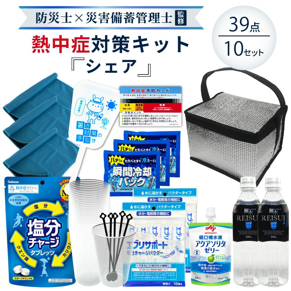 他の画像を見る 防災士監修 みんなで使える シェア用 熱中症対策セット 暑さ対策 熱中症予防キット 夏場の現場作業 工場 スポーツ アウトドア 塩分補給 車載用にも 熱中症対策用品 熱中症対策キット シェア 39点 シルバー 10セット 複数人向け 塩分補給パウダー 熱中症対策グッズ 暑さ対策 WBGT 工事現場 野外作業 アウトドア ATD010 PEACEUP 公式サイト特別価格 ¥ 47,309 税込 詳細を見る お気に入りに登録する