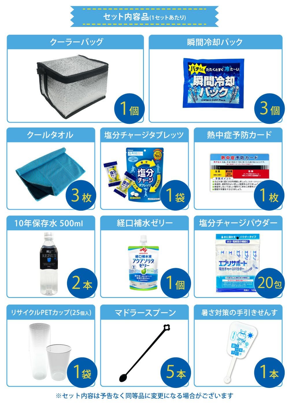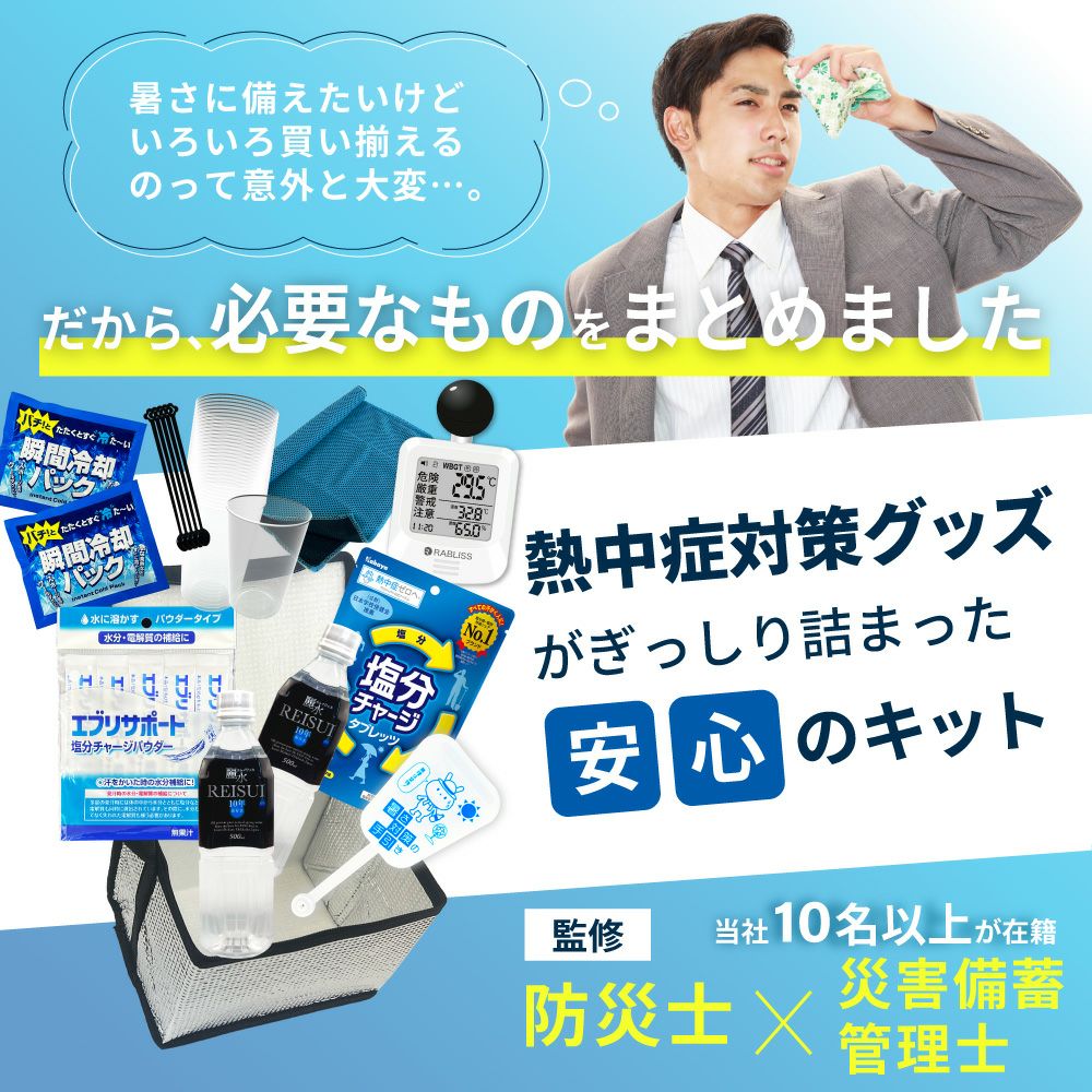 他の画像を見る 防災士監修 暑さ対策 熱中対策応急セット・熱中症予防キット 夏場の現場作業 工場 スポーツ アウトドア 熱中症対策セット 塩分補給 車載用にも 熱中症対策用品 熱中症対策キット 塩分補給パウダー 25点 シルバー 1セット 粉末清涼飲料 暑さ対策 熱中症対策グッズ WBGT 工事現場 農作業 野外作業 アウトドア ATK001 PEACEUP 公式サイト特別価格 ¥ 3,790 税込 詳細を見る お気に入りに登録する