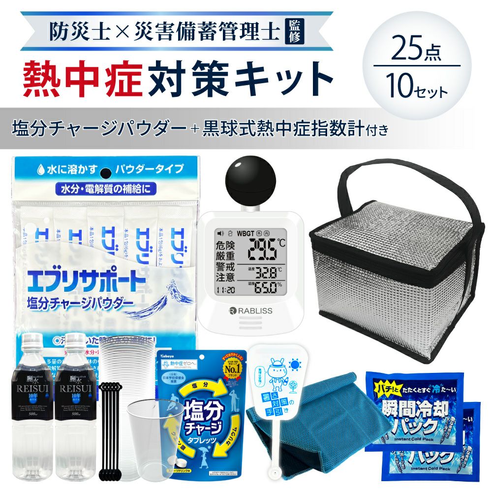 他の画像を見る 防災士監修 暑さ対策 熱中対策応急セット・熱中症予防キット 夏場の現場作業 工場 スポーツ アウトドア 熱中症対策セット 塩分補給 車載用にも 熱中症対策用品 熱中症対策キット 25点 シルバー 10セット 黒球式熱中症指数計付き 塩分補給パウダー 熱中症対策グッズ WBGT 工事現場 農作業 野外作業 アウトドア ATK010K PEACEUP 公式サイト特別価格 ¥ 64,029 税込 詳細を見る お気に入りに登録する