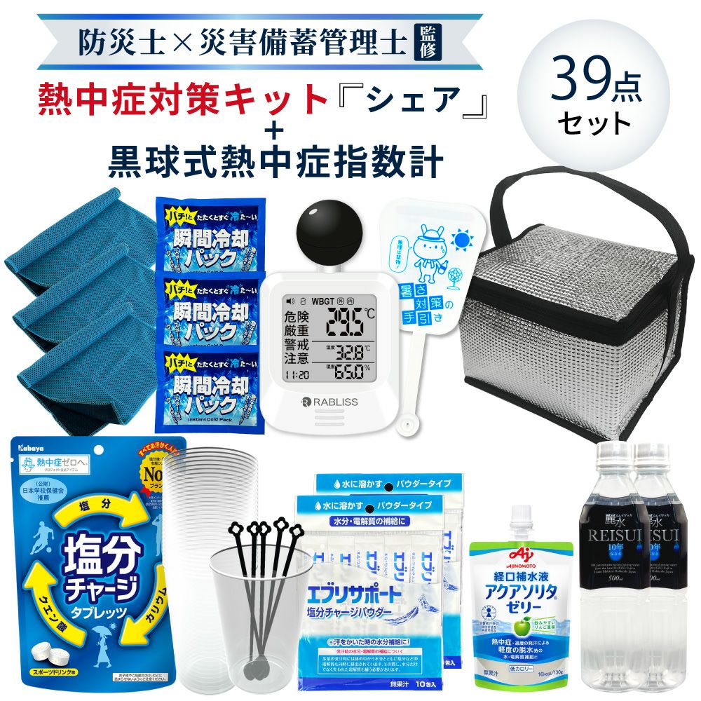 他の画像を見る 防災士監修 みんなで使える シェア用 熱中症対策セット 暑さ対策 熱中症予防キット 夏場の現場作業 工場 スポーツ アウトドア 塩分補給 車載用にも 熱中症対策用品 熱中症対策キット シェア 黒球式熱中症指数計付き 39点 シルバー 1セット 複数人向け 塩分補給パウダー 熱中症対策グッズ 暑さ対策 WBGT 工事現場 野外作業 アウトドア ATD001K PEACEUP 公式サイト特別価格 ¥ 8,340 税込 詳細を見る お気に入りに登録する