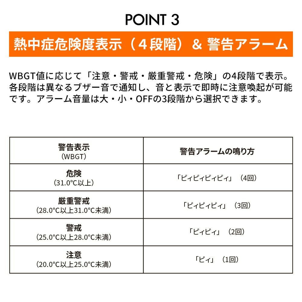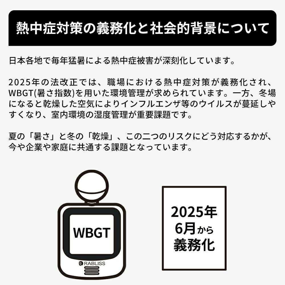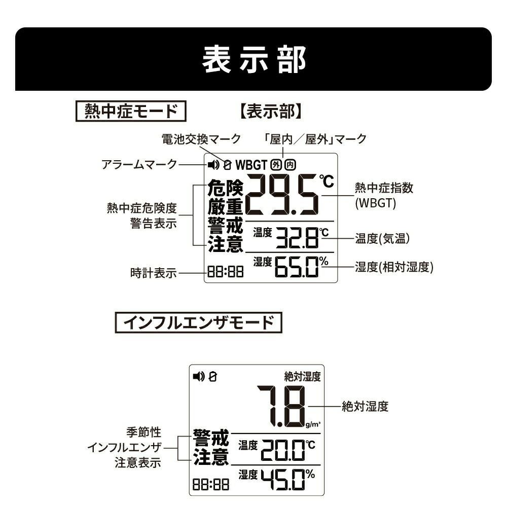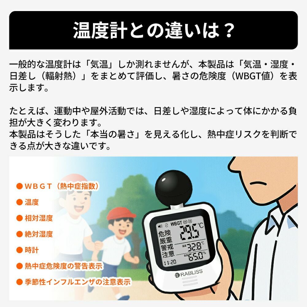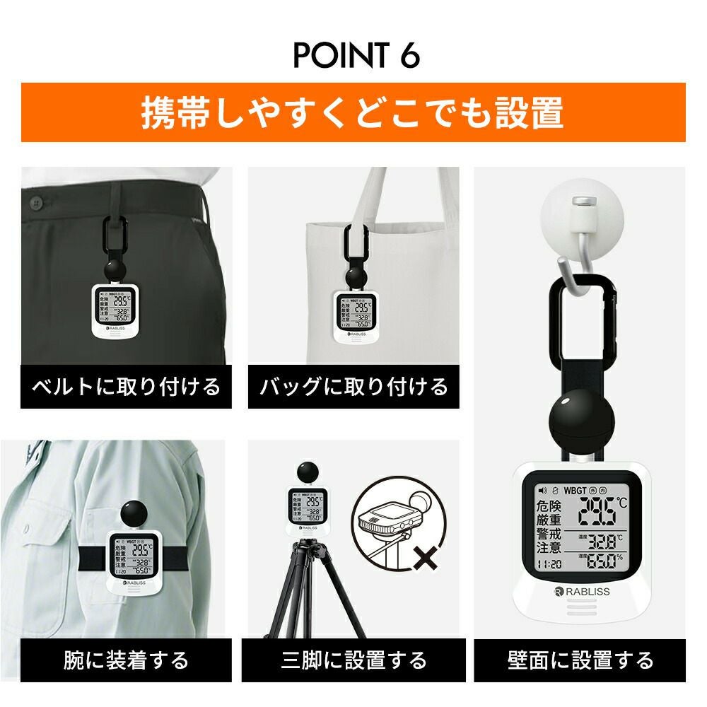 他の画像を見る 黒球式WBGT計で熱中症リスクを可視化、絶対湿度でインフルエンザ注意をお知らせ。 熱中症対策 黒球式熱中症指数計 2個 インフルエンザ注意機能 感染症対策 絶対湿度 WBGT 黒球式 JIS準拠 IP65 防塵防水 KO406 RABLISS 公式サイト特別価格 ¥ 10,241 税込 詳細を見る お気に入りに登録する